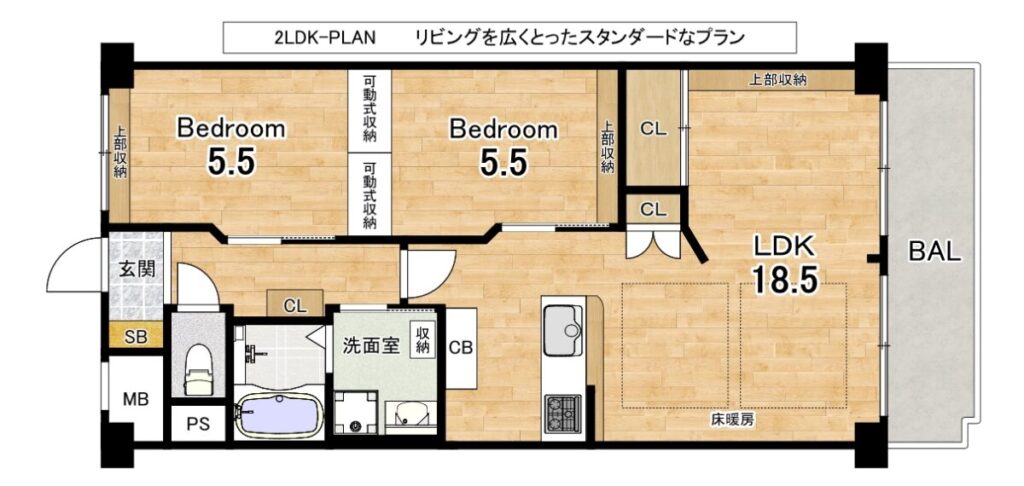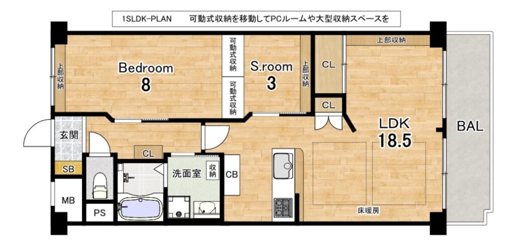 ●可動式収納を設置することで1LDK・2LDKどちらにでも対応できる間取りに