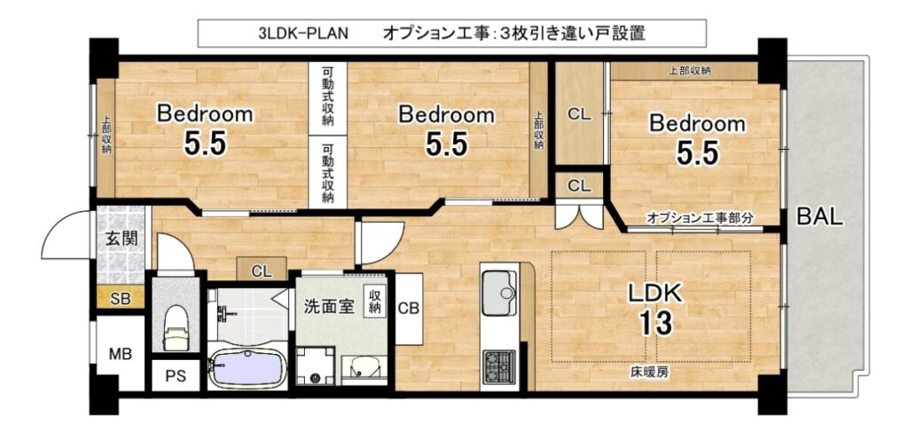 ●LDK部分も扉の後付けができるように下地を入れてあります。ゆえに3LDKの間取りにも対応可能です