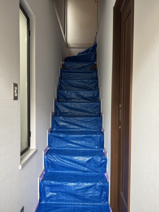階段に手すりの新設取り付けです。